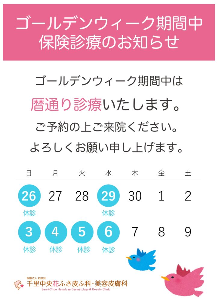 2026年ゴールデンウィーク期間中の診療のお知らせです。